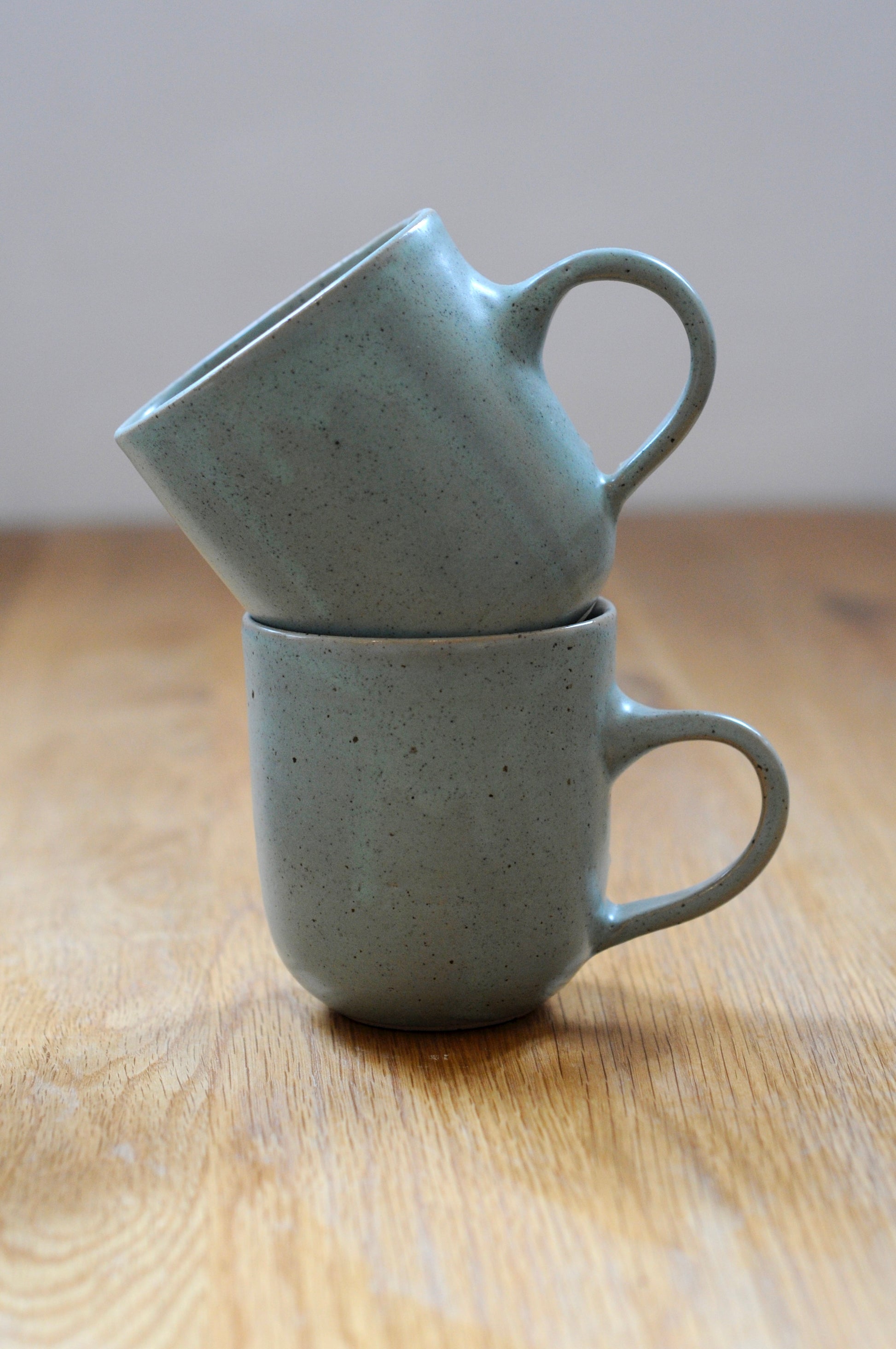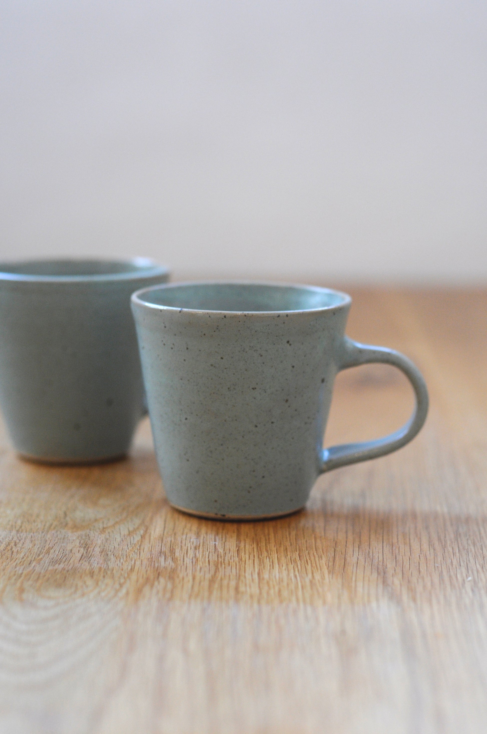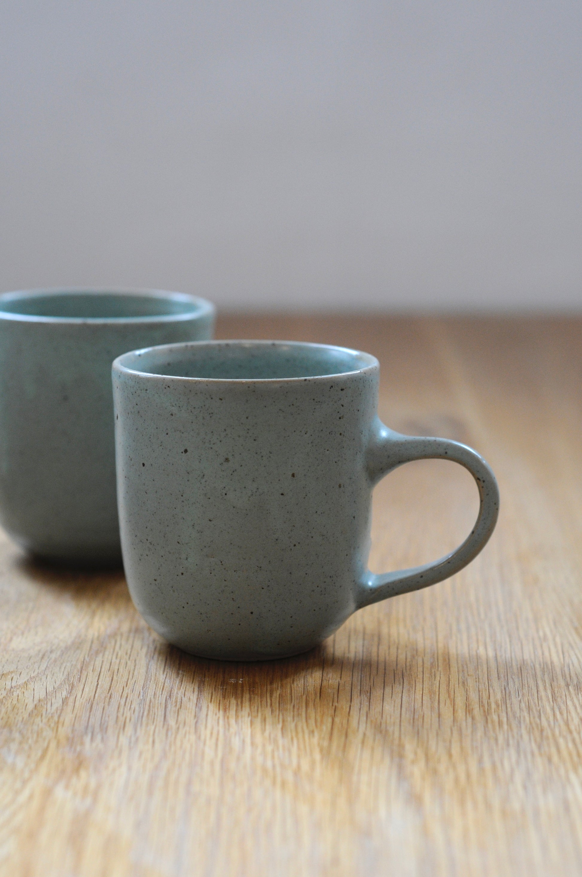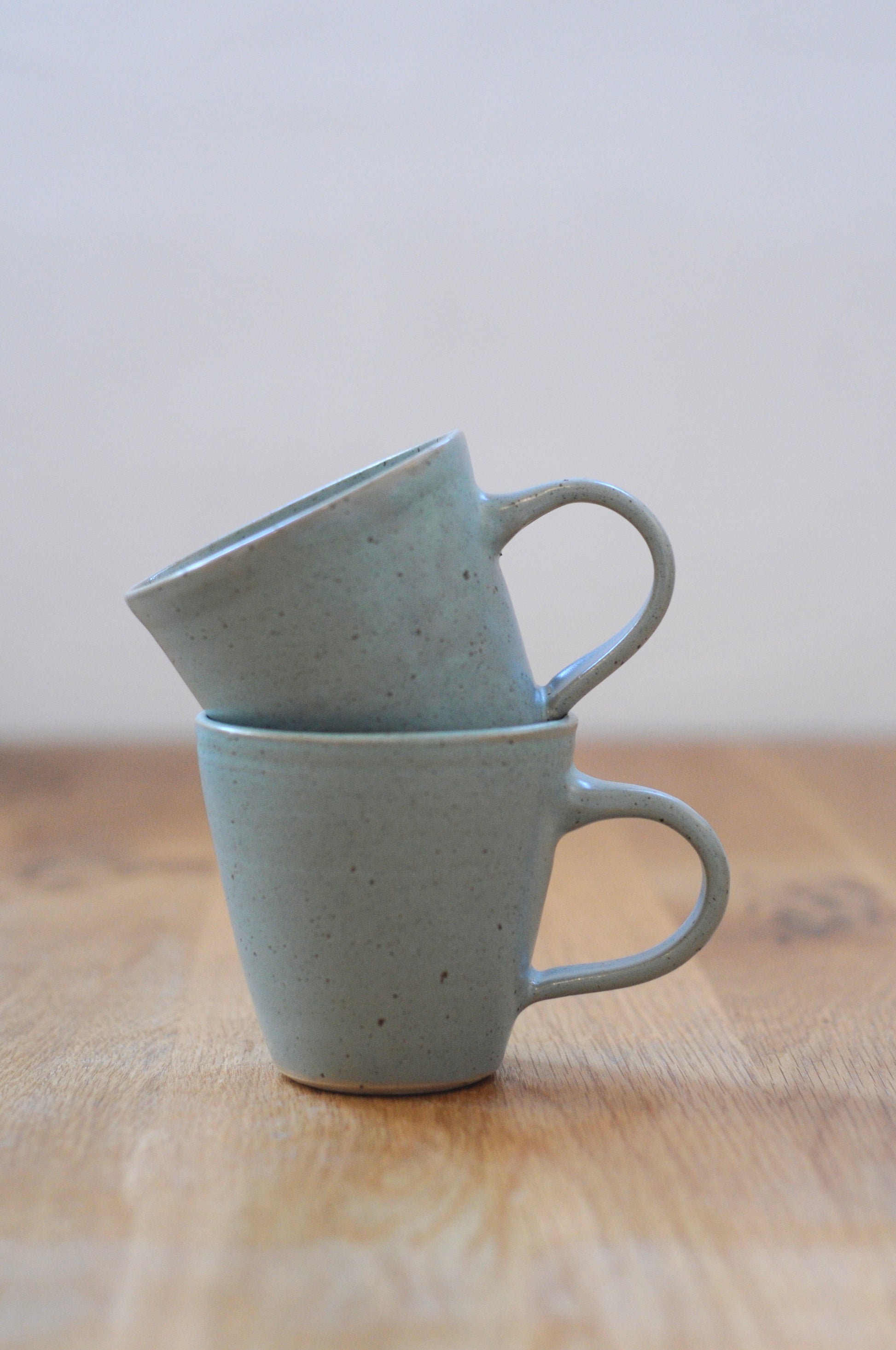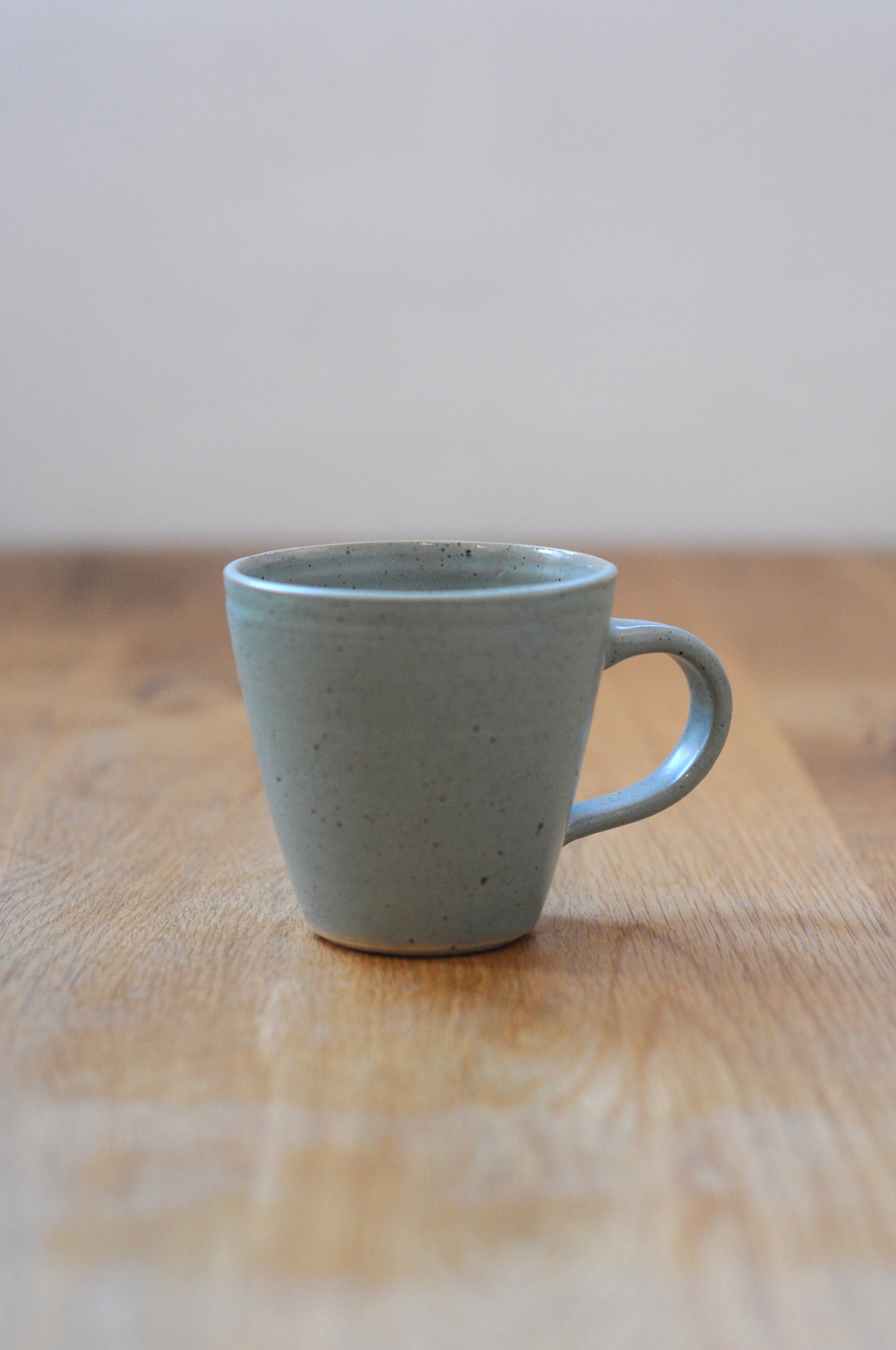 עיצוב קלאסי של כוס, עשוי מחימר לבן מנוקד ומזוגג בגלזורה לבנה מט