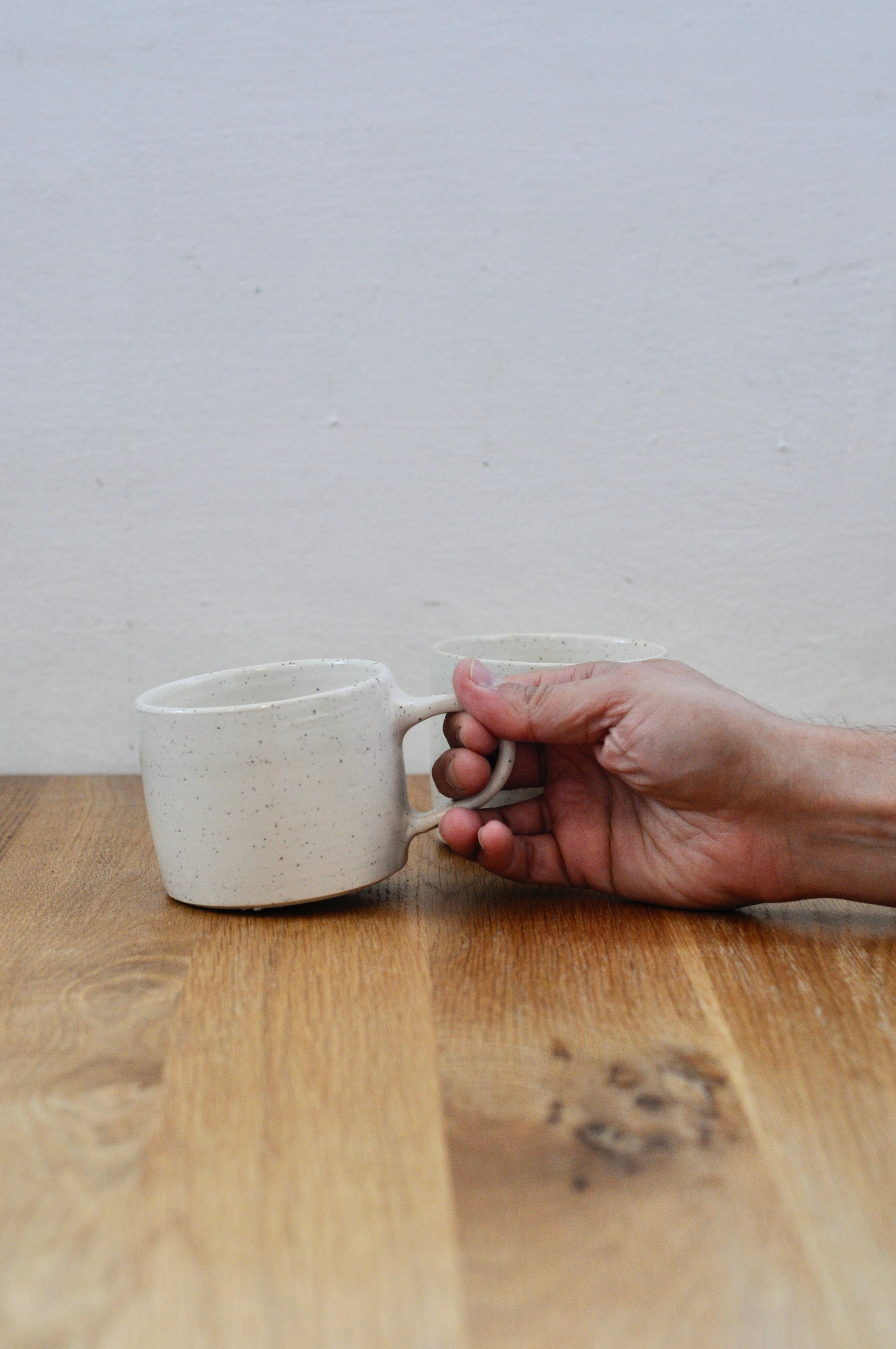 זוג כוסות מקרמיקה גדולות ולבנות בעבודת יד