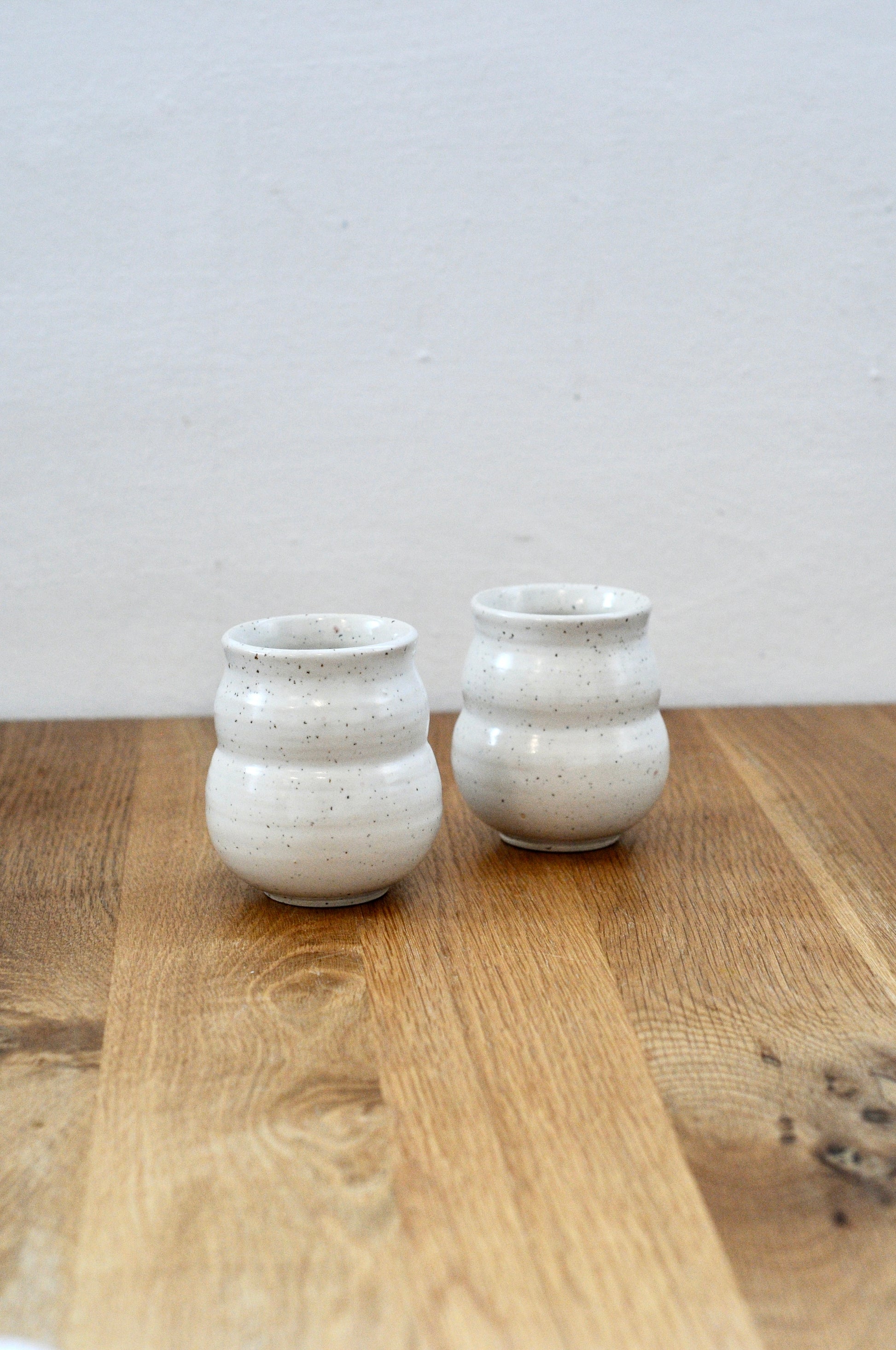 ספל עשוי חימר לבן, מתאים למשקאות חמים וקרים.