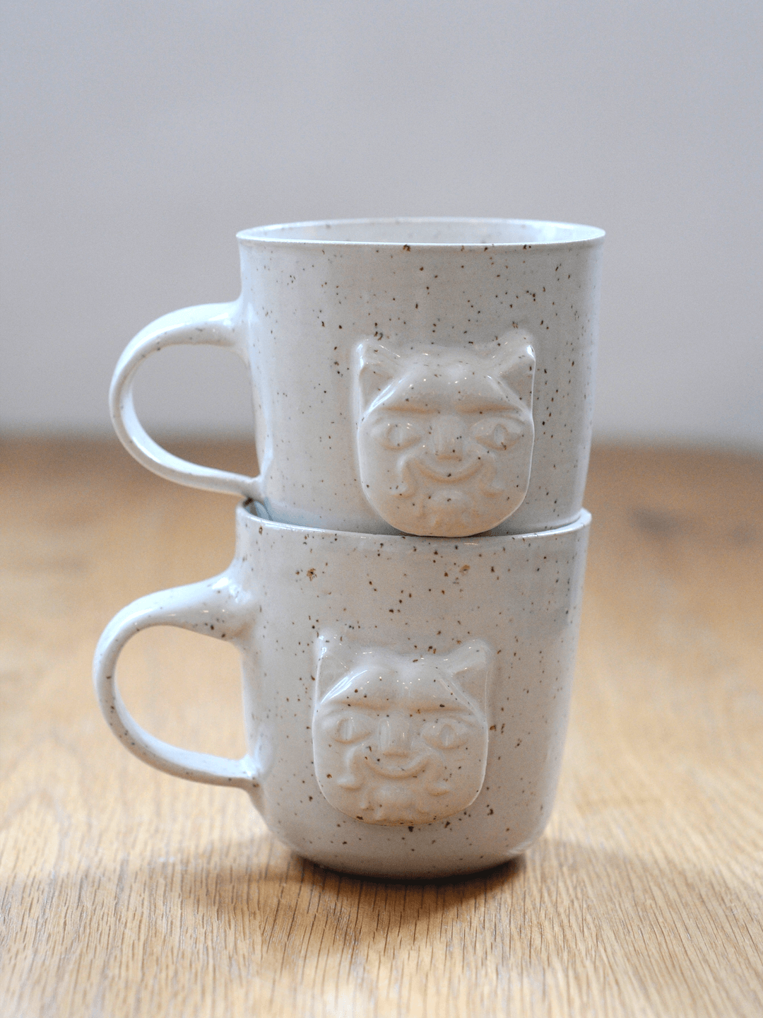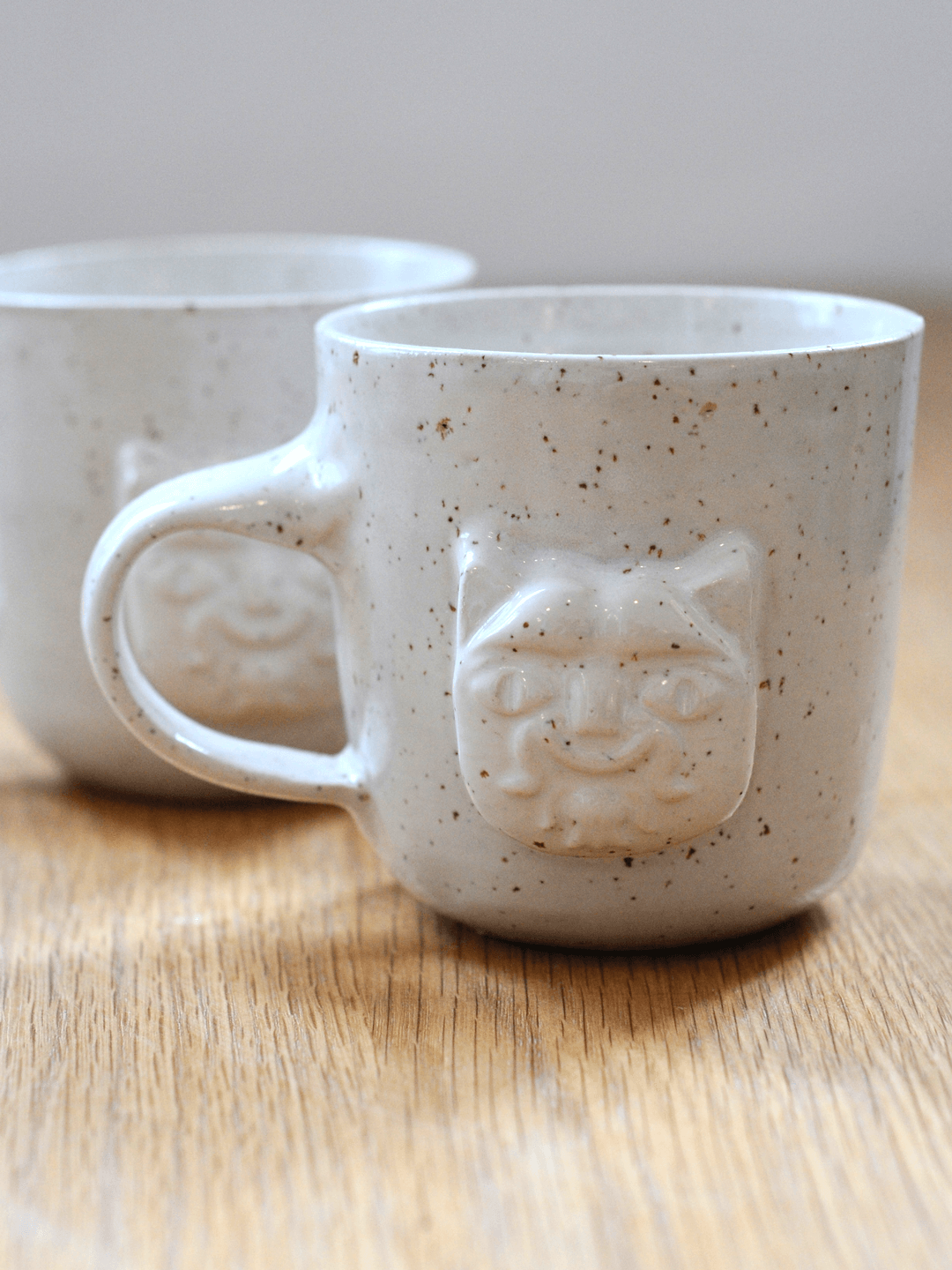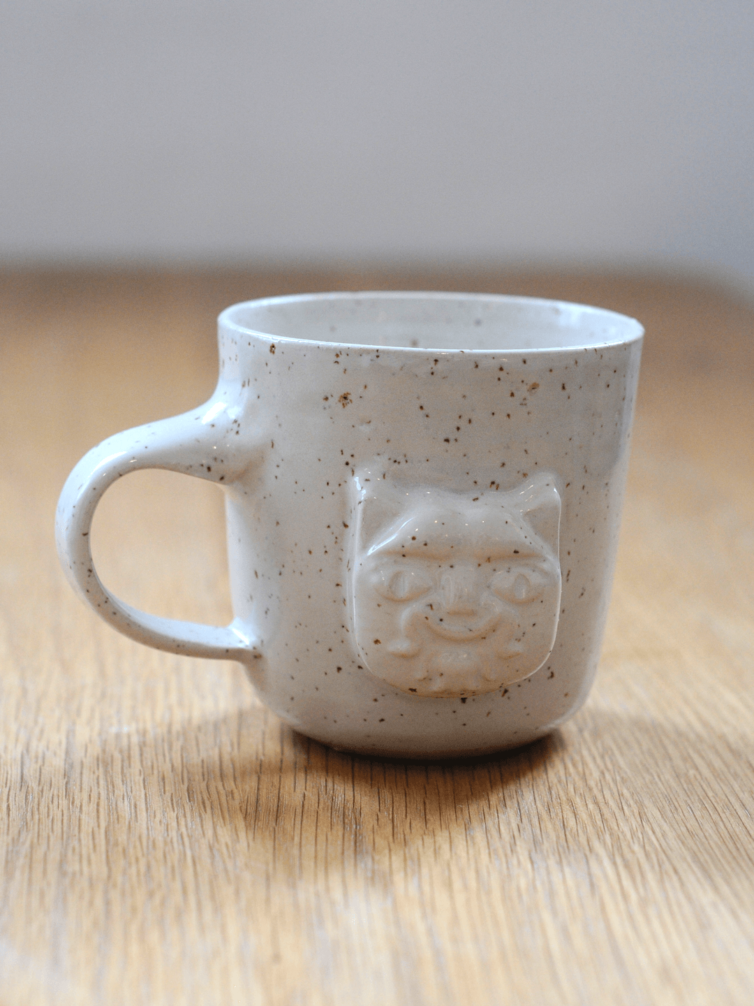 כוס חימר עם בלט של חתול קצ׳לה, בשיתוף פעולה עם האמן מיקי מוטס