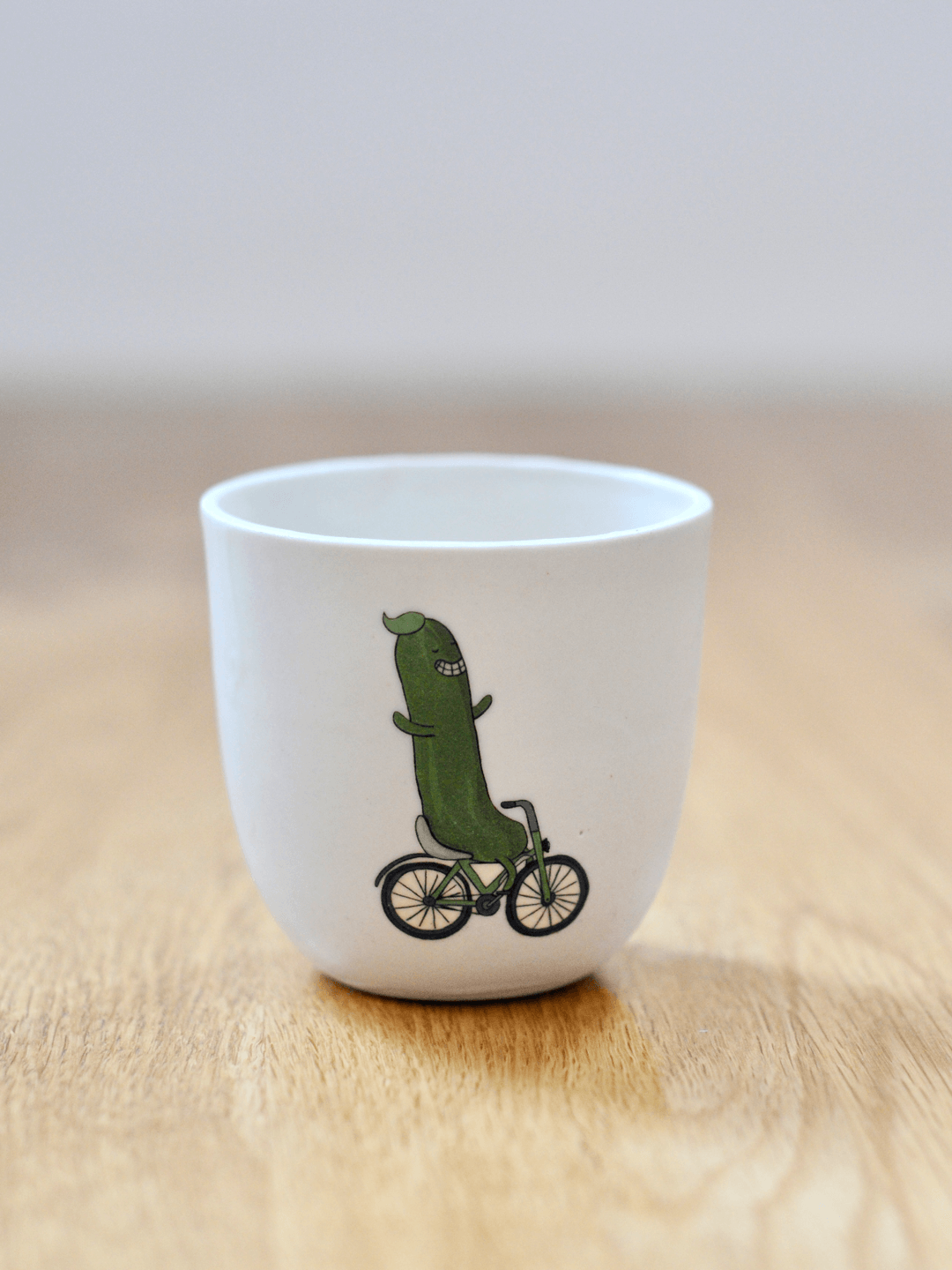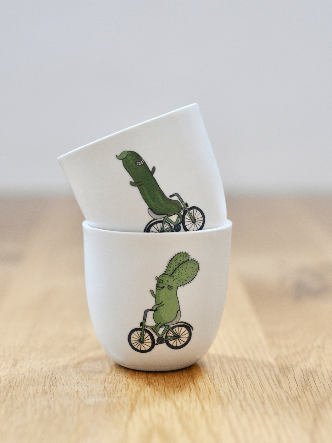 כוס עם דקאל רבטוס וקאמבר על אופניים
