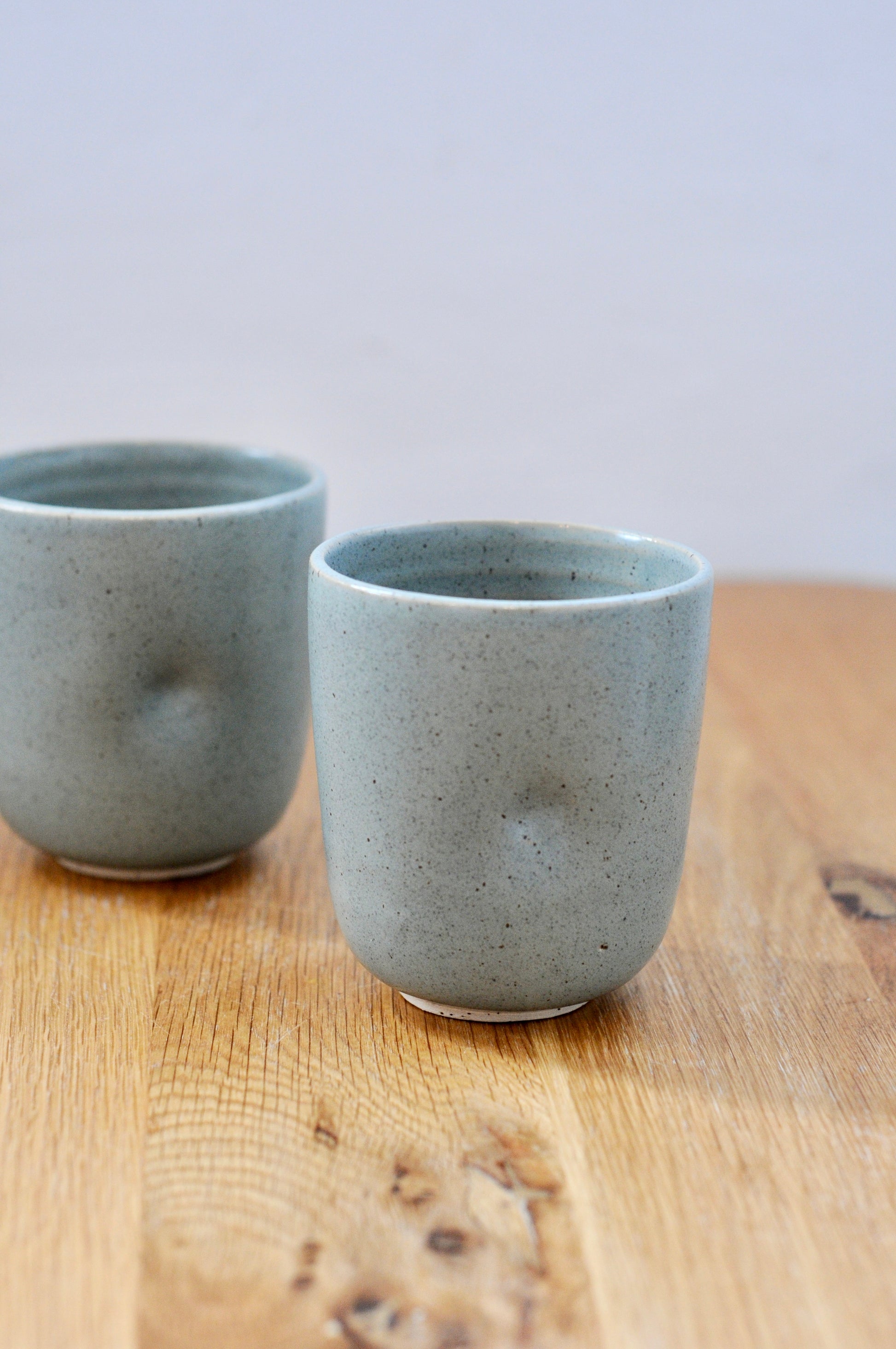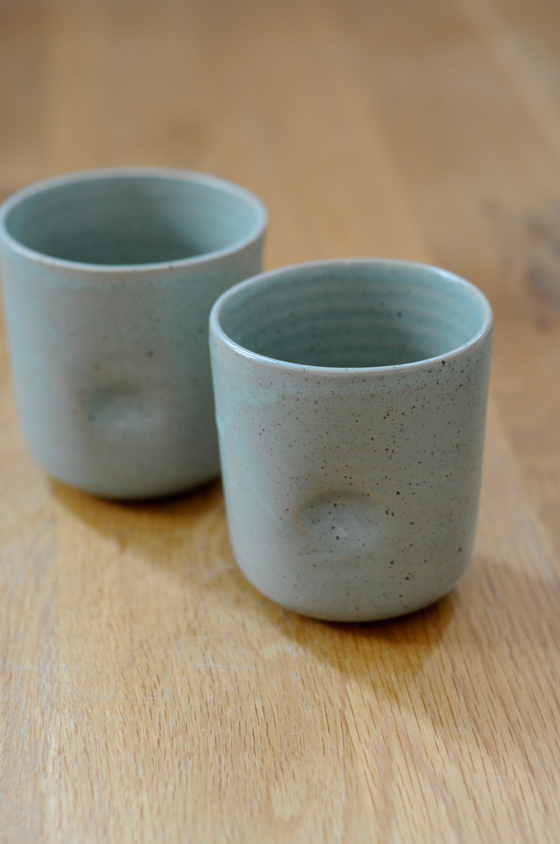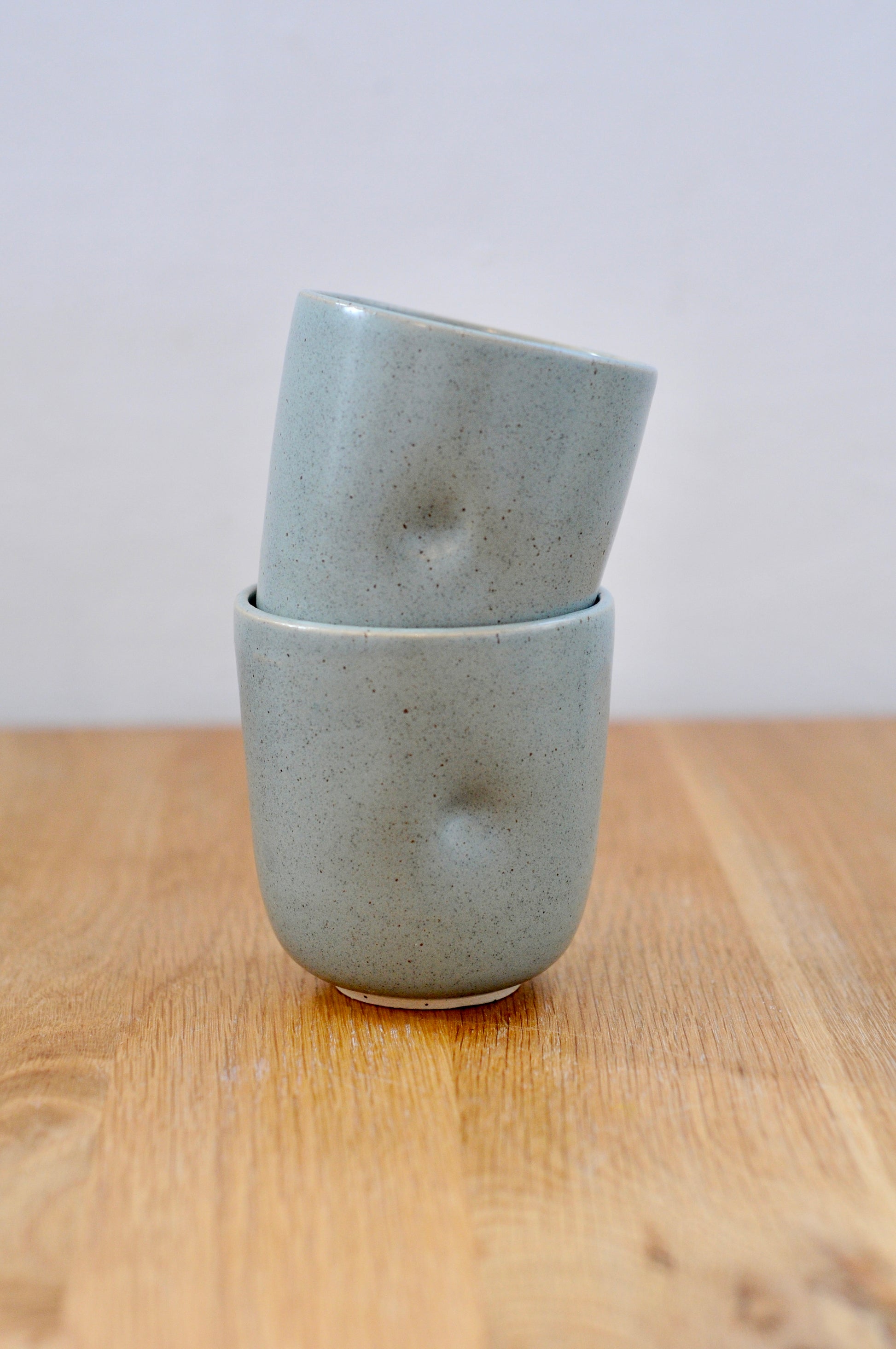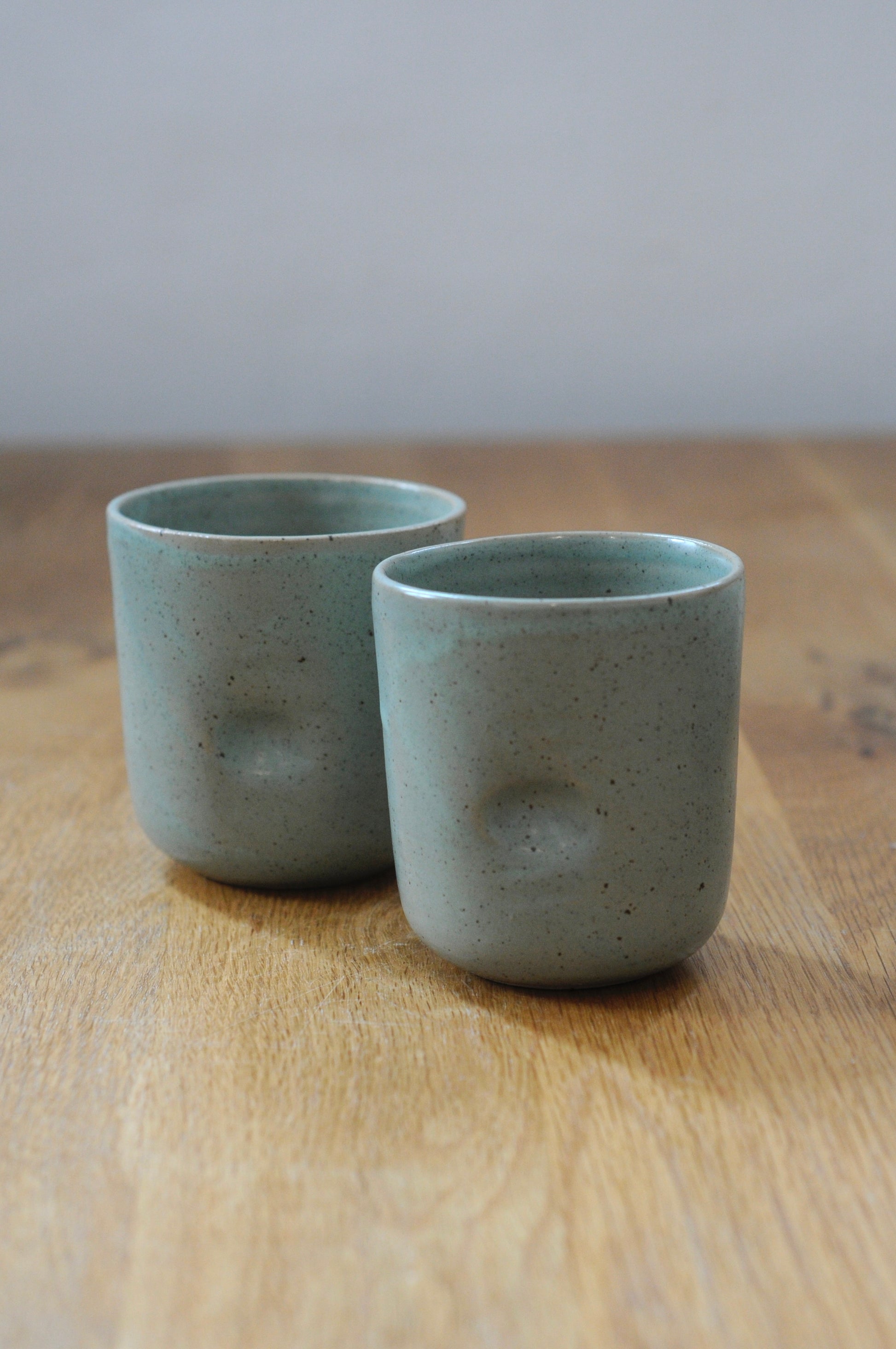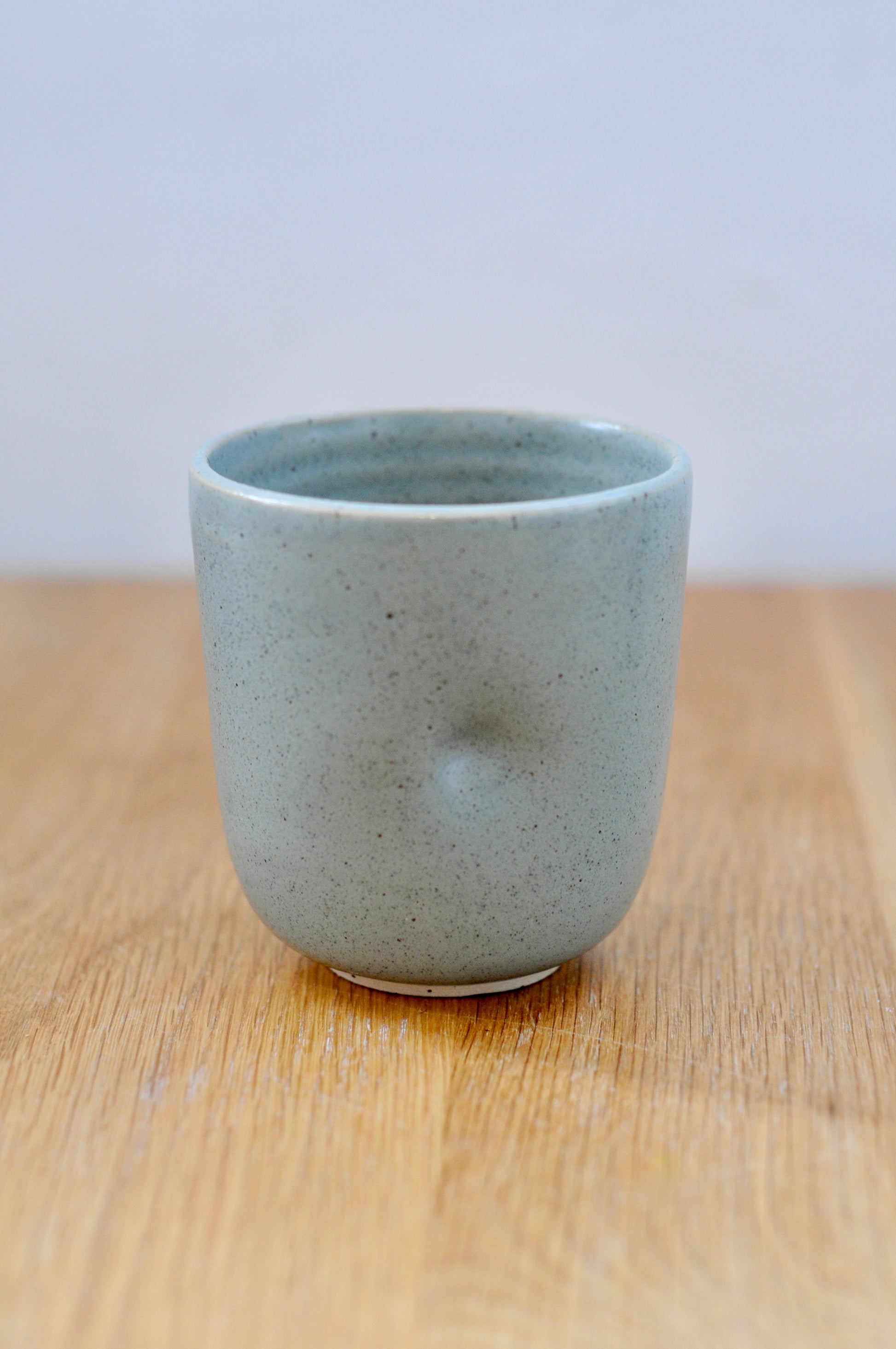 כוס קרמיקה עם מקום לאצבע בעבודת יד