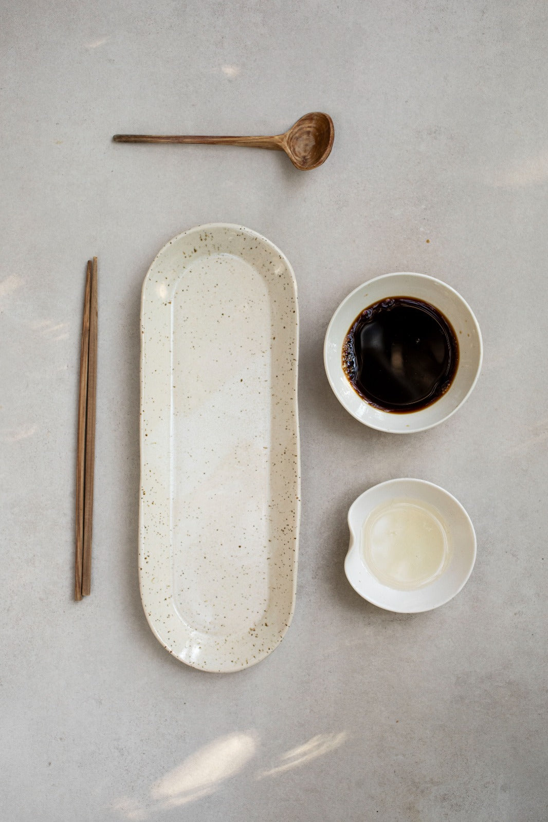 עשויה חימר לבן מנוקד ומזוגגת בגלזורה לבנה-מט