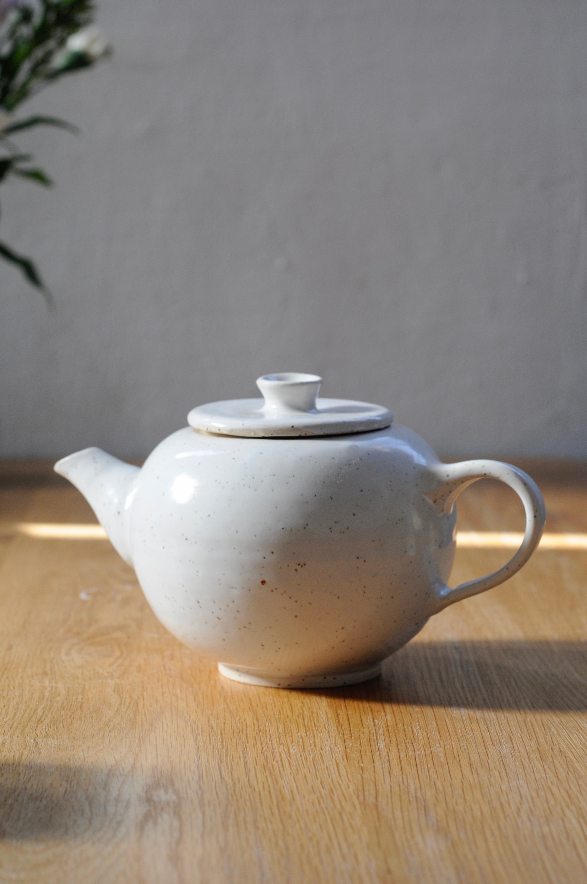 עשוי מחימר לבן מנוקד ומזוגג בגלזורה לבנה שאני רוקחת.