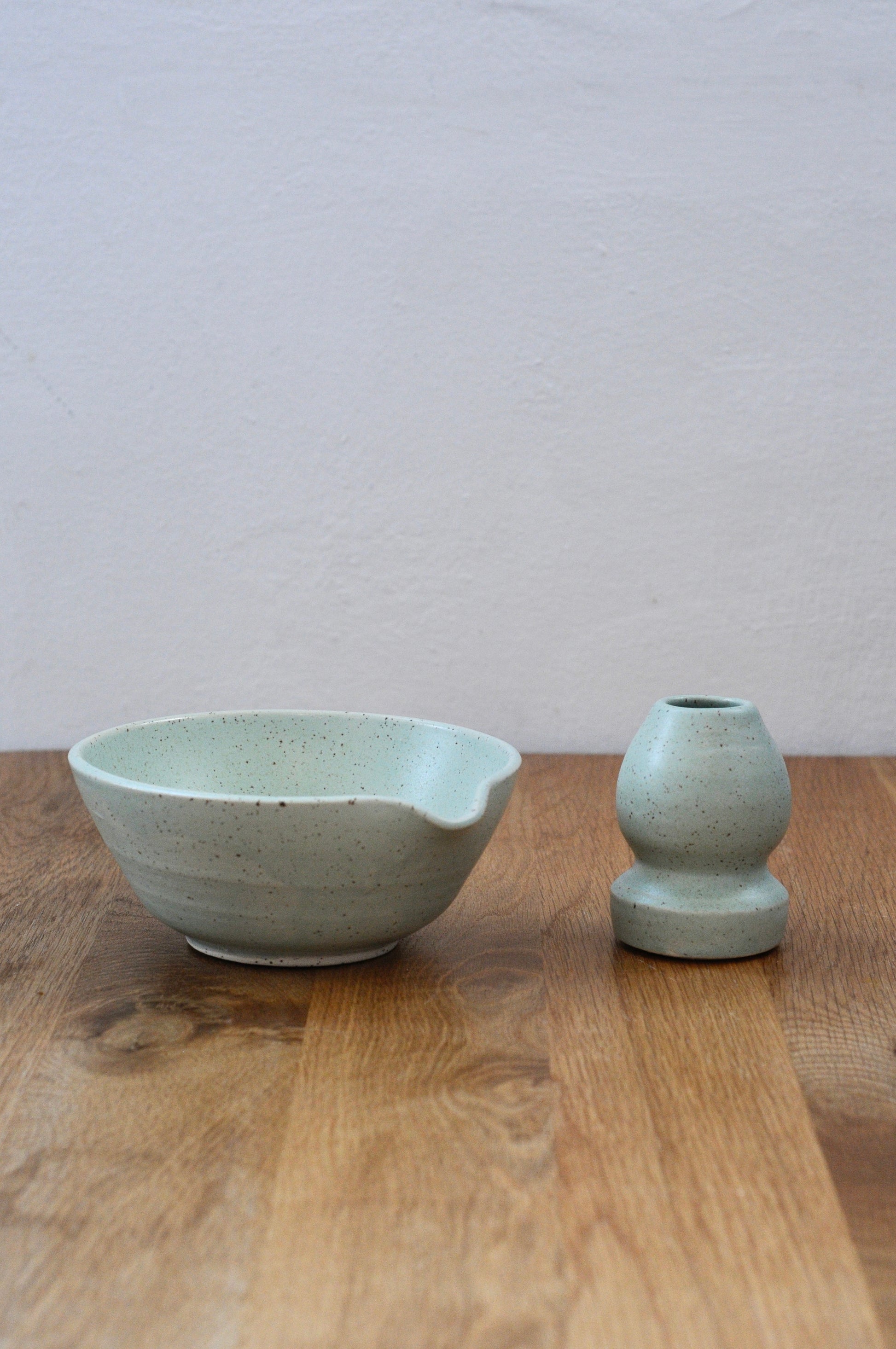 קערת מאצ׳ה מקרמיקה בעבודת יד מנטה, סט למאצ׳ה